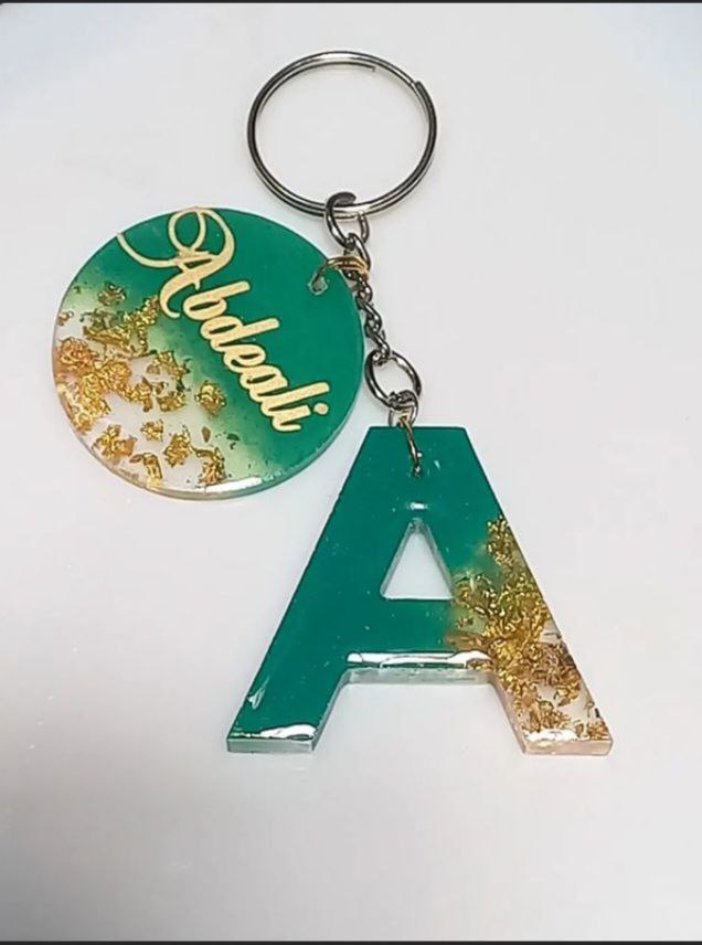 Introducing our exquisite Personalized Resin Keychain, featuring the distinguished Letter ‘A’ adorned with a bespoke touch—a miniature keychain bearing the name ‘Abdeli,’ delicately crafted in a soothing sea green hue. Each keychain is meticulously handcrafted, blending precision with artistry to create a unique accessory that exudes charm and individuality. The bold presence of the Letter ‘A’ is beautifully complemented by the personalized detail of the name ‘Abdeli,’ adding a touch of sentimentality to every journey.